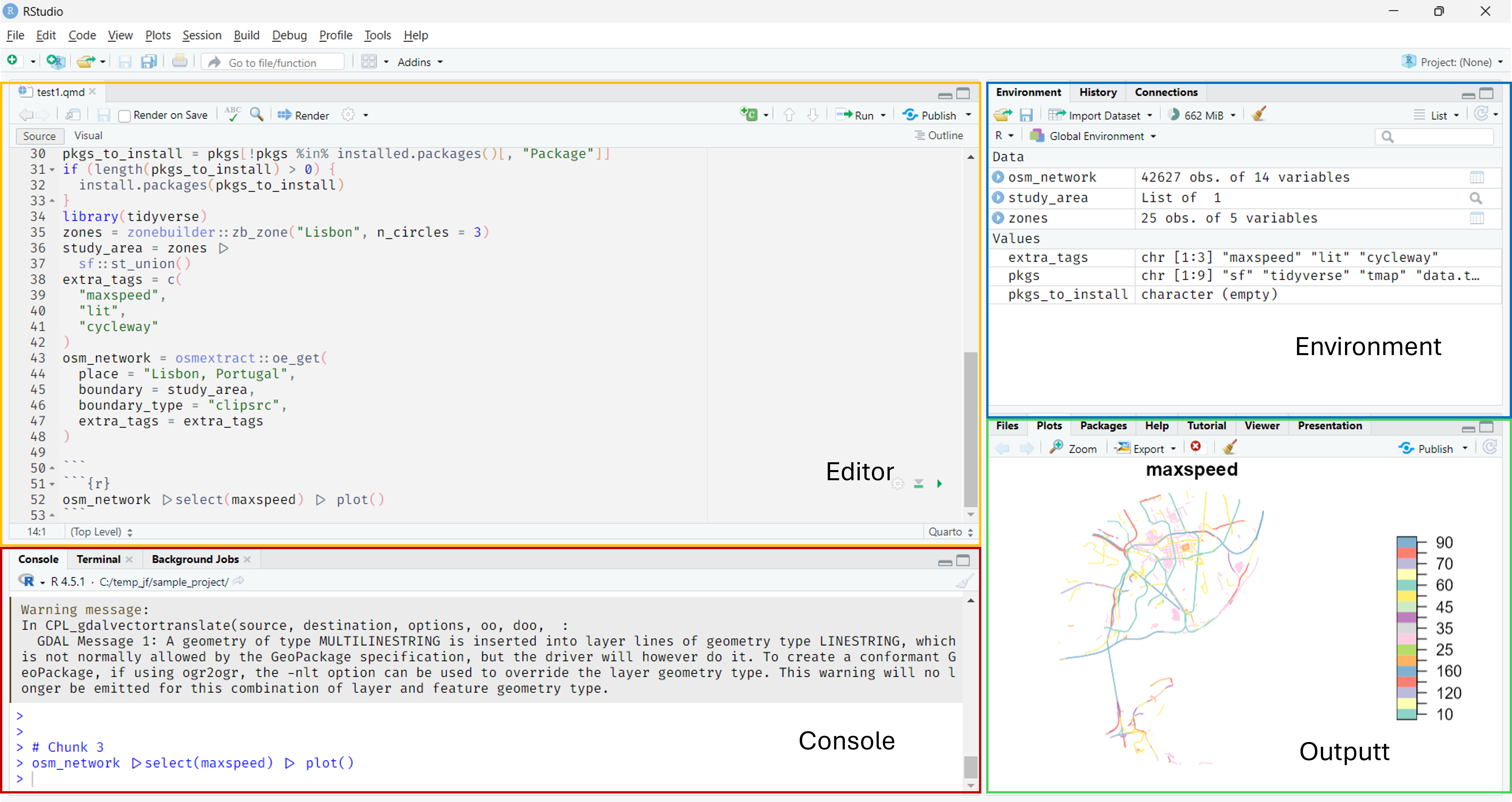 Source Editor (top-left): Write and edit R code