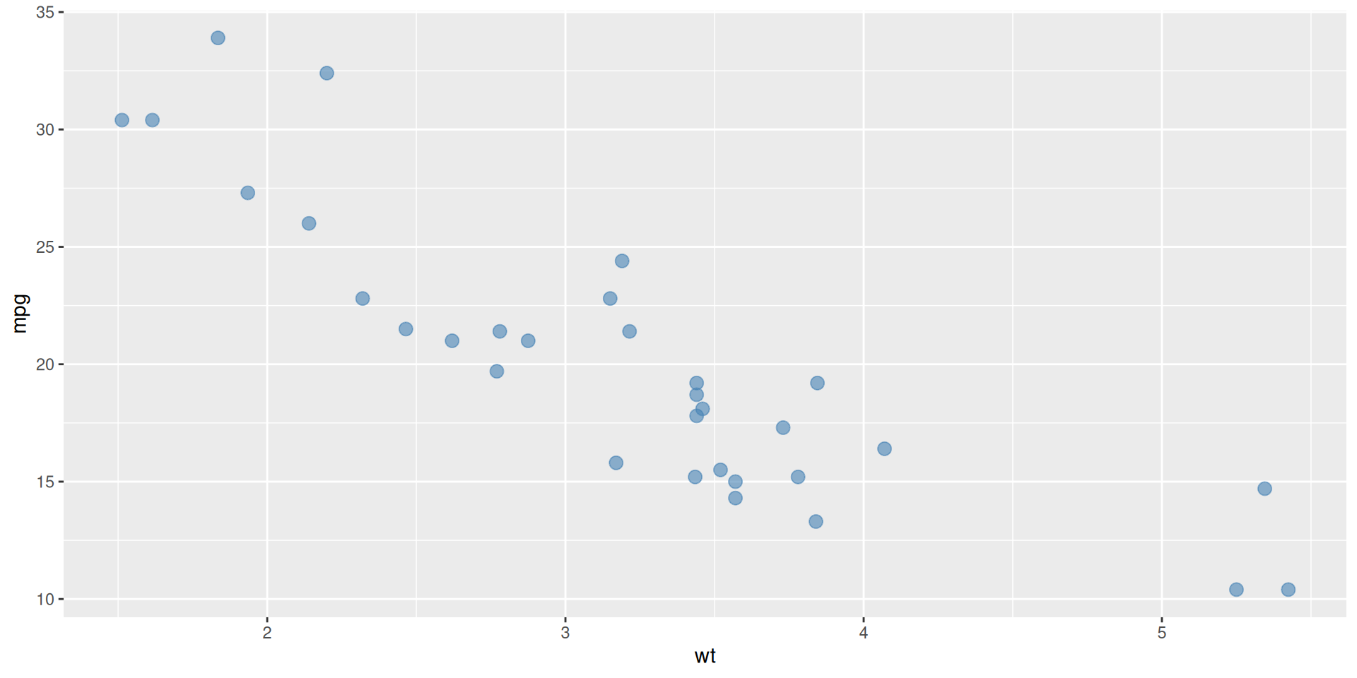scatter_plot <- ggplot(mtcars, aes(x = wt, y = mpg)) +