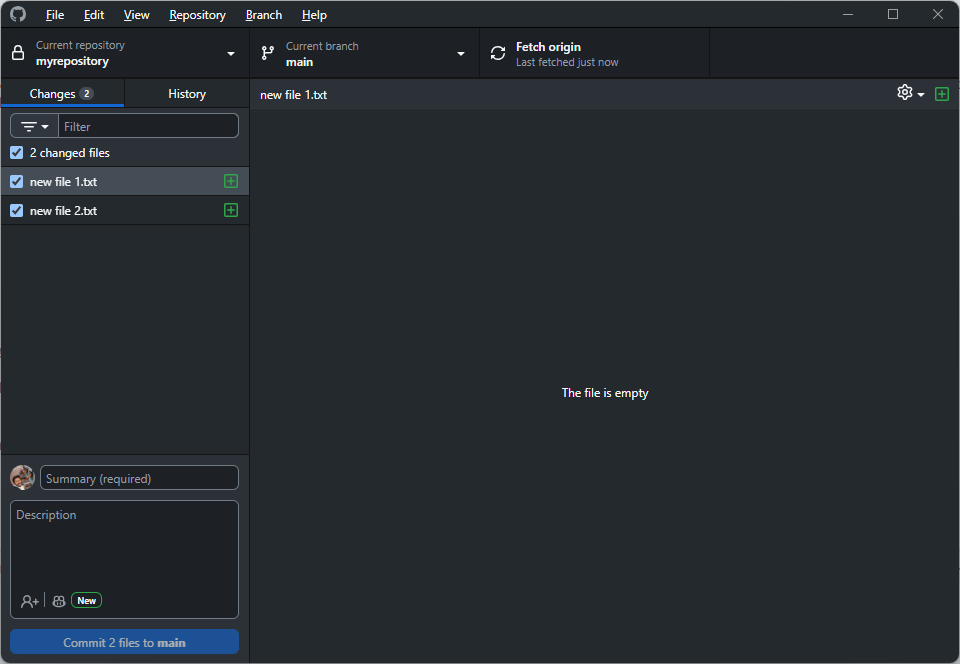 In GitHub Desktop, changes are shown automatically. You may select the files that you want to include in the commit (stage them). Add a descriptive message and click “Commit to main”.