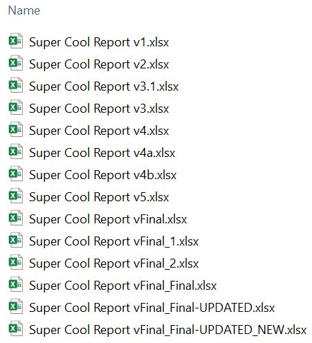 Working with code/scripts/notebooks usually involves preparing them, revising and editing their content, and sharing with others. After completing at least one round of this process you can end up with several different versions of the same file. Are you familiar with Figure 1?