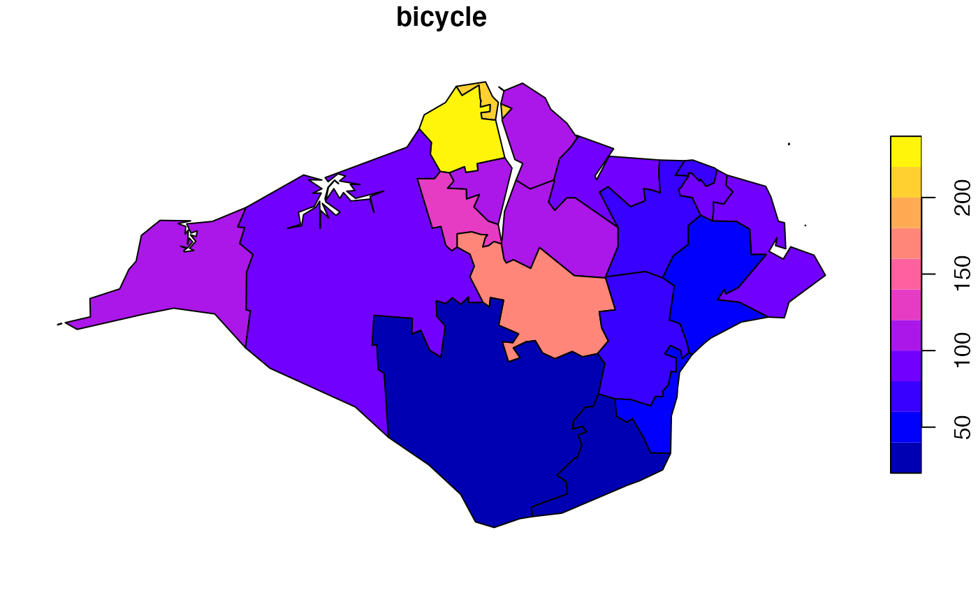 lwd = wight_lines_30$all / mean(wight_lines_30$all) * 5 plot(wight_lines_30[c("bicycle", "car_driver", "foot")], lwd = lwd)
